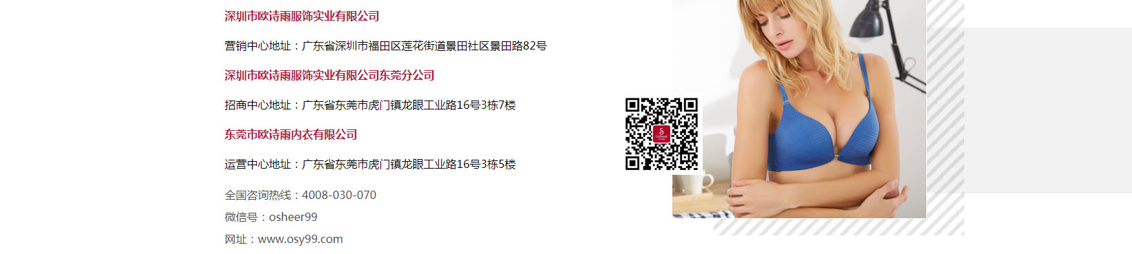 深圳市歐詩雨服飾實業(yè)有限公司,1999年涉足內(nèi)衣生產(chǎn)和經(jīng)營,發(fā)展至今,已成為集設(shè)計研發(fā)、生產(chǎn)、銷售、外貿(mào)為一體的現(xiàn)代化品牌服飾集團(tuán)公司。目前公司擁有肩帶生產(chǎn)廠、面料生產(chǎn)廠、內(nèi)衣成品生產(chǎn)廠等多個生產(chǎn)基地,企業(yè)先后引進(jìn)法國超一流內(nèi)衣生產(chǎn)機(jī)械。同時,引進(jìn)了服裝行業(yè)優(yōu)秀的軟件,采用優(yōu)先的計算機(jī)技術(shù)、網(wǎng)絡(luò)技術(shù),實現(xiàn)門店前后臺之間,總部和門店、配送中心之間物流信息的共享與交換。 |